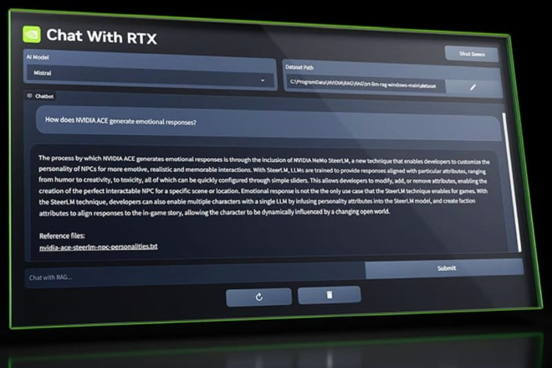 Researchers find Chat with RTX useful when processing PDF files. NVIDIA’s chatbot is said to have performed better than Microsoft’s Copilot in this task, retrieving key information without issue. Experts also noted that Chat with RTX provides a response almost instantly, without the delays that are usually observed when using cloud chatbots ChatGPT or Copilot.