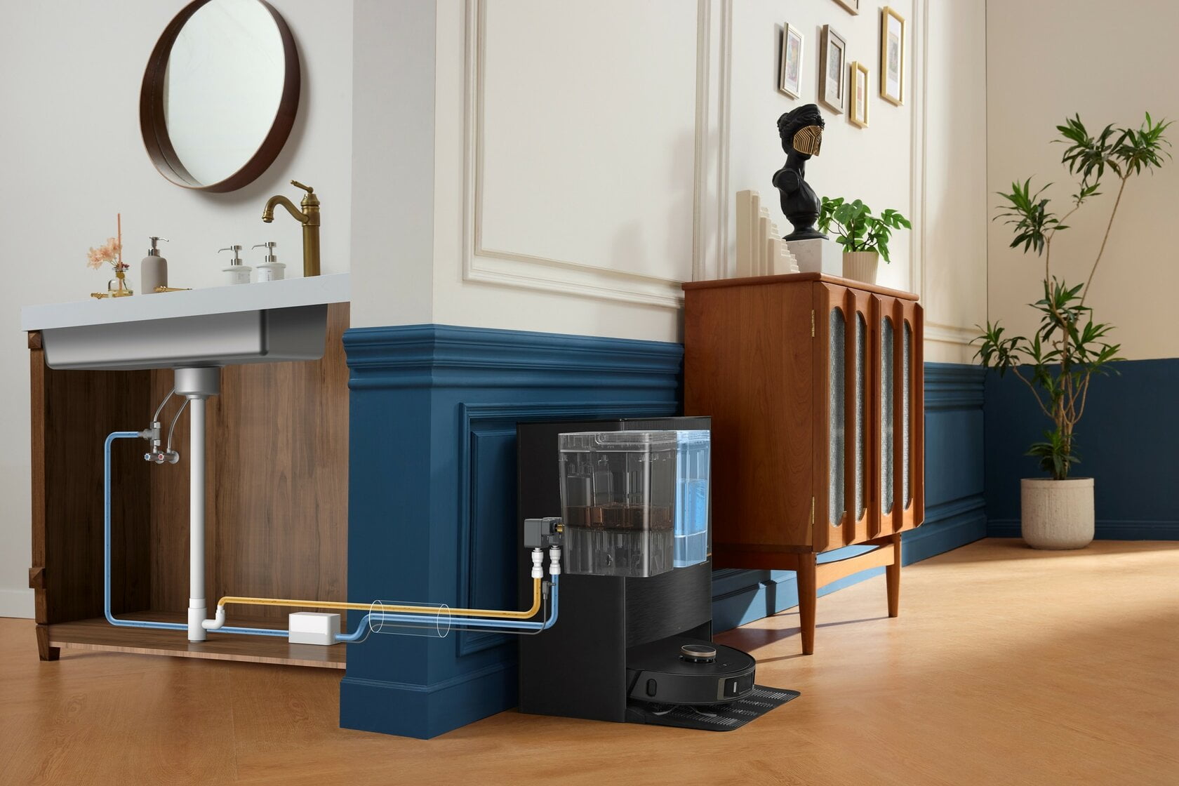 It is possible to connect the station to a water supply to fully automate the removal of accumulated dirt from the house – the whole scheme operates in this regard on the principle of a washing machine – dirty water is drained into the sewer without user intervention.