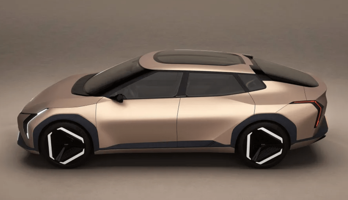 The EV3 carries a bold and futuristic design. Like the EV9 concept, it features distinct geometric patterns, including octagonal wheel arches that significantly flare out from the body, and mirrors these shapes in the taillights.